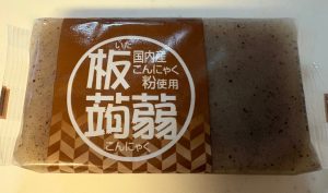 街に出たらスーパーで蒟蒻を手にしてください。蒟蒻は100円以下で買うことができるインフレ経済の渦中にいながら超優等生です。ちなみに、蒟蒻を手綱蒟蒻に加工するときは安い蒟蒻の方が作りやすいこともあり私はいつも安い蒟蒻を探して買っています。(写真の蒟蒻は250gで37円)
